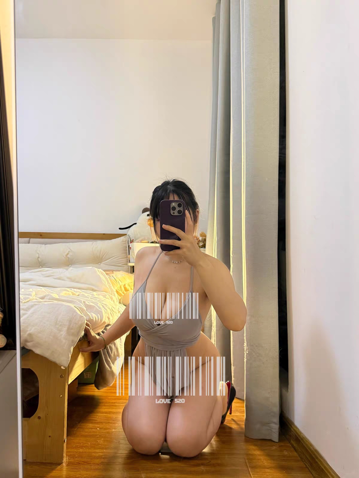 [原创]年后第一帖,母狗越来越骚了,粉色情趣露臀连衣裙+